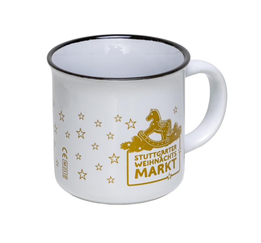 Vintage Keramiktasse weiß mit schwarzem Rand Aktuelles neues Logo des Stuttgarter Weihnachtsmarktes